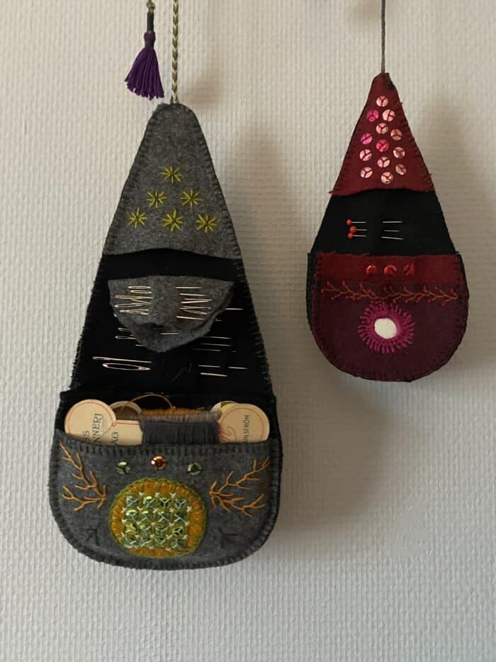 Vi syr i vadmal och dekorerar med olika broderistygn och återbruksslöjd.